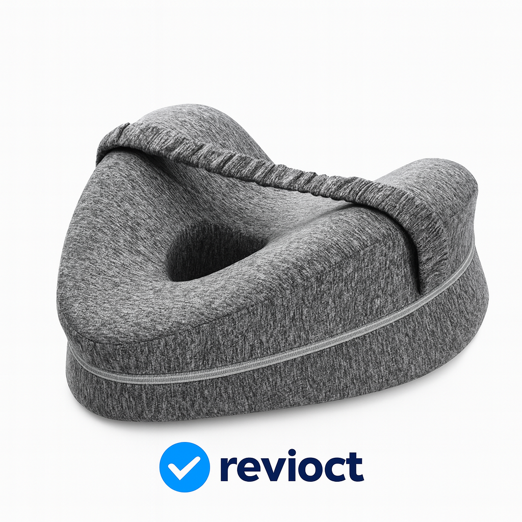 The Revioct™ Knee Pillow is designed to maintain appropriate leg spacing and promote neutral spinal alignment, helping reduce pressure that contributes to nighttime awakenings. Its high-density memory foam and secure positioning strap provide consistent, passive support throughout the night—without the need for exercises or behavioral changes.