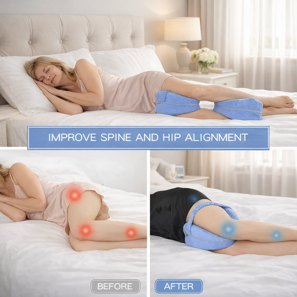 Persistent discomfort and frequent repositioning during side sleeping are commonly associated with poor leg support and spinal misalignment. When the legs collapse inward, increased mechanical stress is placed on the lumbar spine, hips, and knees, often resulting in disrupted sleep.